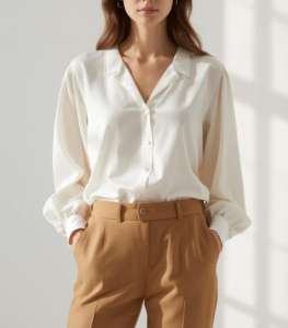 This type of blouse is ideal for office outfits and pairs beautifully with tailored pieces.