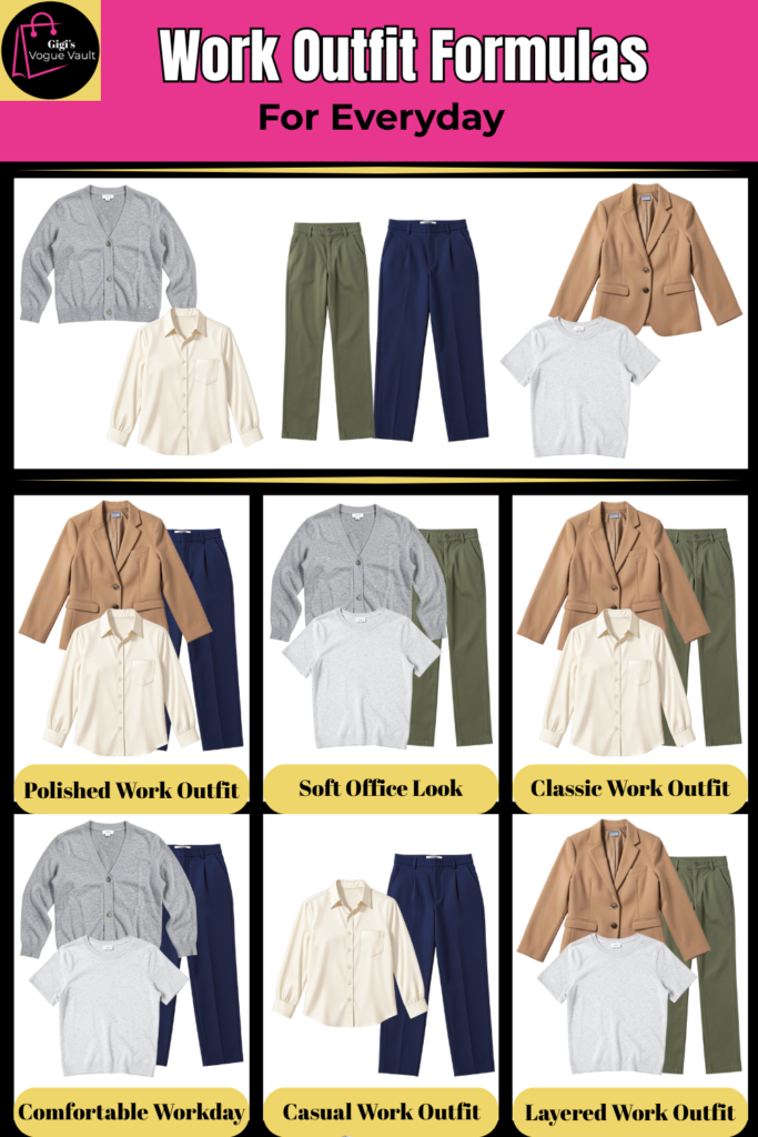 These combinations cover a full workweek while keeping your wardrobe minimal and cohesive.