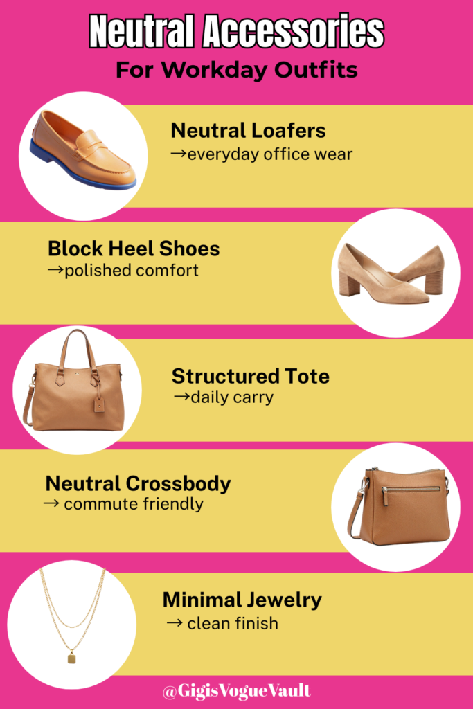 Neutral accessories ensure every outfit looks cohesive, no matter which pieces you combine.